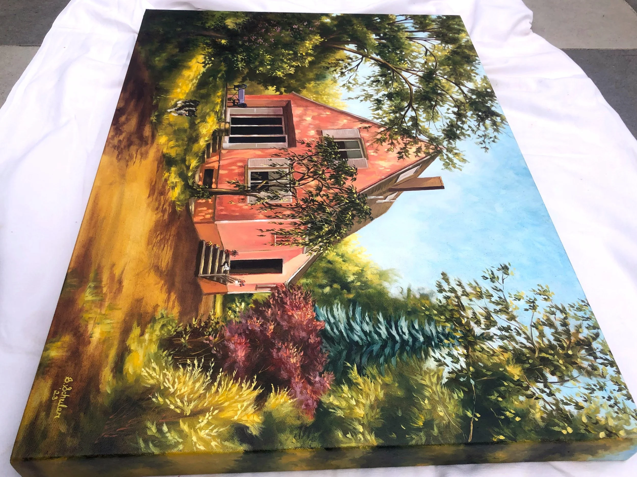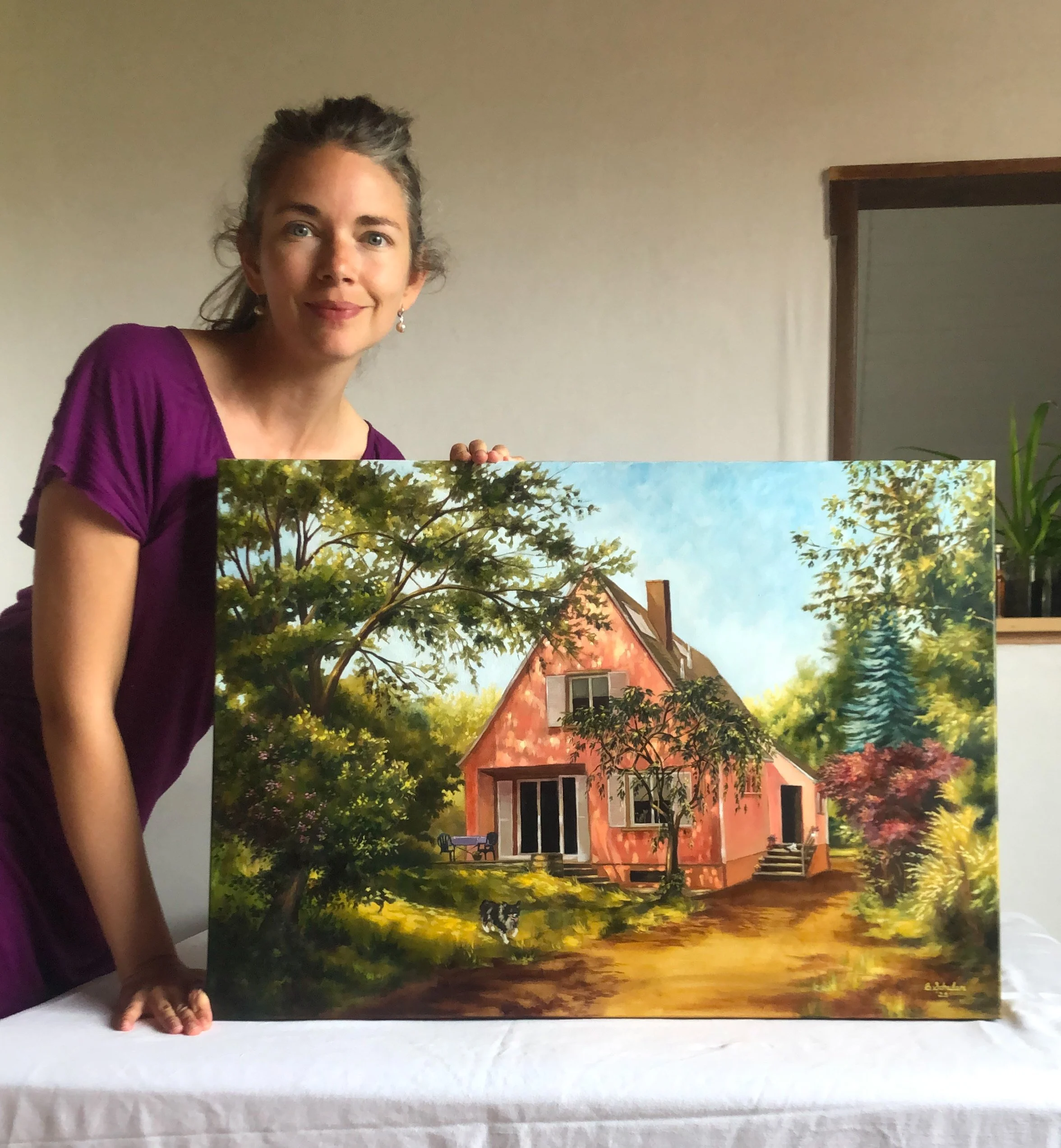 All paintings are completed on gallery, 4 cm thick edged, cotton canvases using Kama walnut oil- based paints (Canada) or Lefranc Bourgeois (France) oil paints.