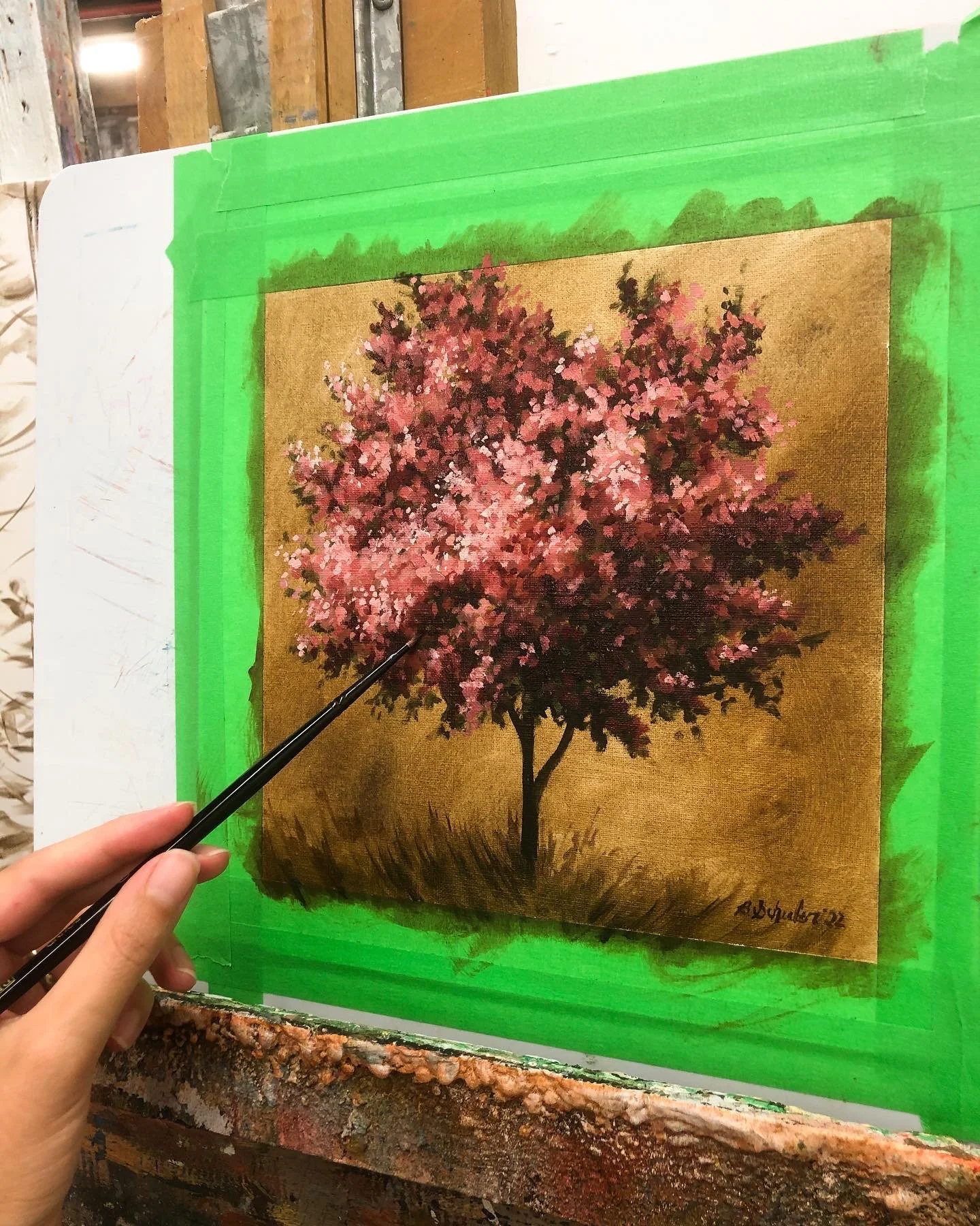 - All paintings are completed on gallery, 4 cm thick edged, cotton canvases using Kama walnut oil- based paints (Canada) or Lefranc Bourgeois (France) oil paints.